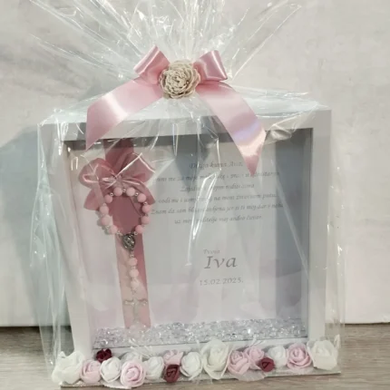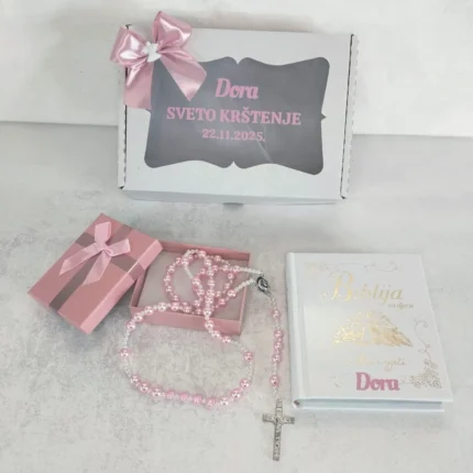 • KUTIJA ZA SET – s imenom, datumom krštenja, natpisom SVETO KRŠTENJE, satenska vrpca i anđeo