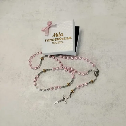 Uljepšajte poseban dan krštenja personaliziranim poklonom koja ostaje trajna uspomena. Prekrasna krunica sa imenom kao simbol vjere, ljubavi i pažnje.