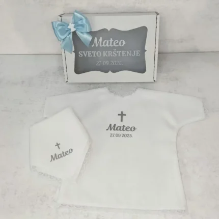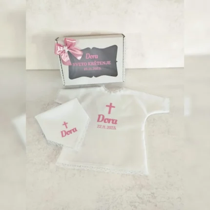 Prvi svečani trenutak mališana zaslužuje ovaj elegantan set za krštenje, neizostavan dio za krštenje, a nakon krštenja ostaje kao trajna uspomena na poseban dan.