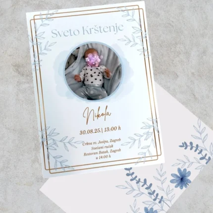 Najavite krštenje djeteta uz ove elegantne i nježne pozivnice. Pozivnica je izrađena s posebnom pažnjom na detalje, a sadrži i predivnu kovertu usklađenu sa pozivnicom.