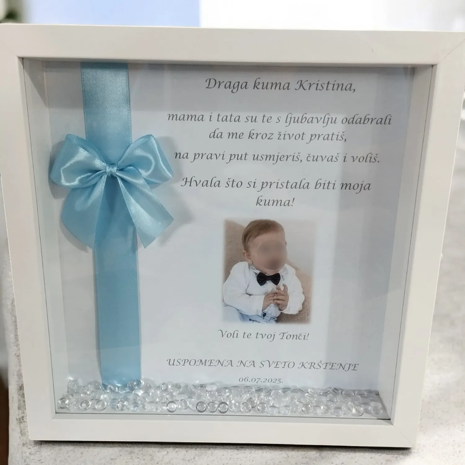 Zahvalite krsnim kumovima na poseban način uz ovaj personalizirani okvir kao uspomenu za posebnu ulogu u djetetovom životu.