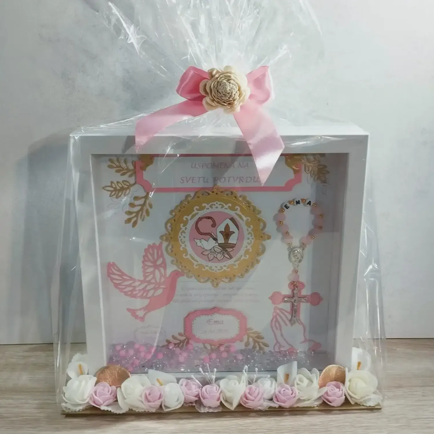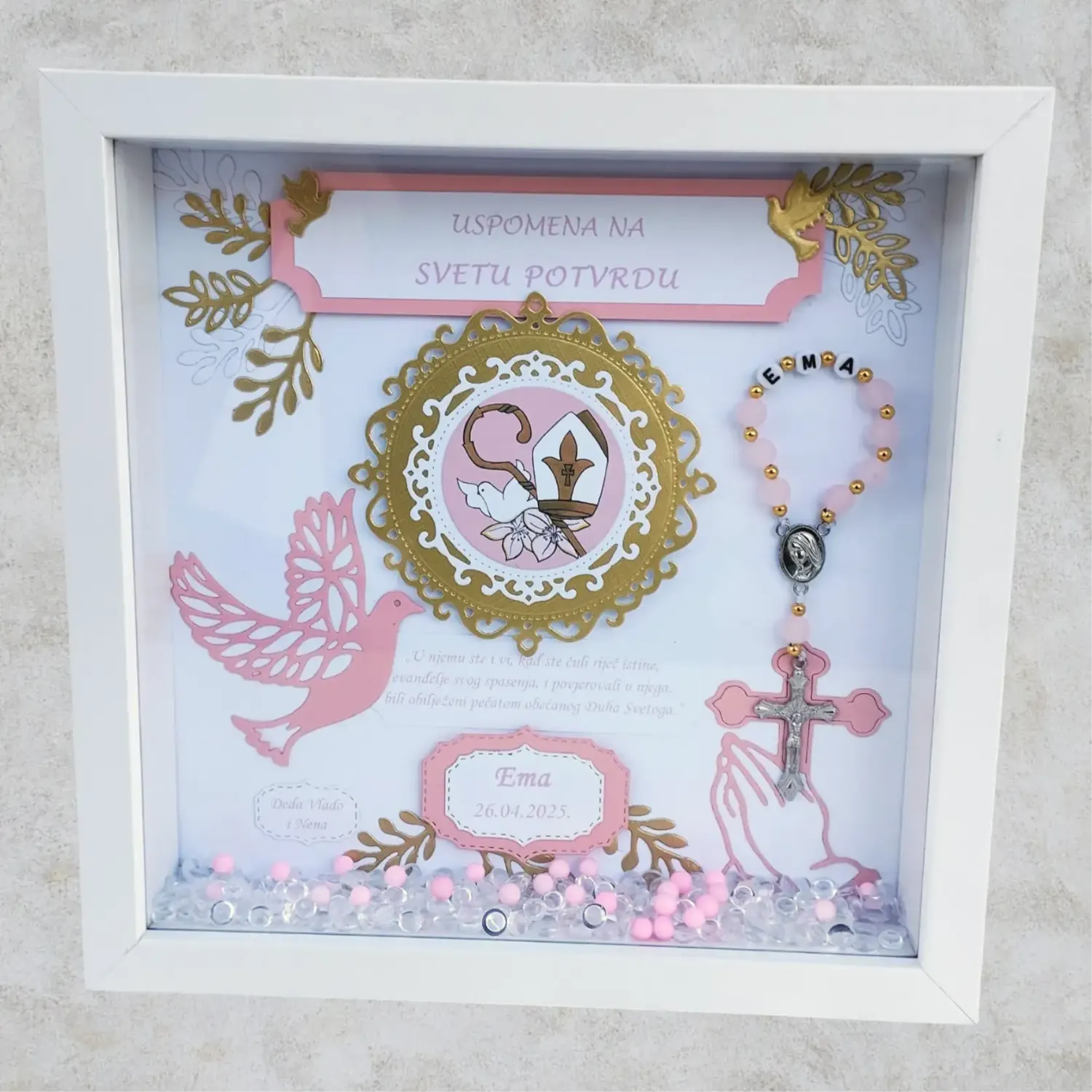 Poklonite prekrasni personalizirani duboki okvir kao uspomenu na krizmu. Savršen poklon koji će postati prelijepa uspomena.