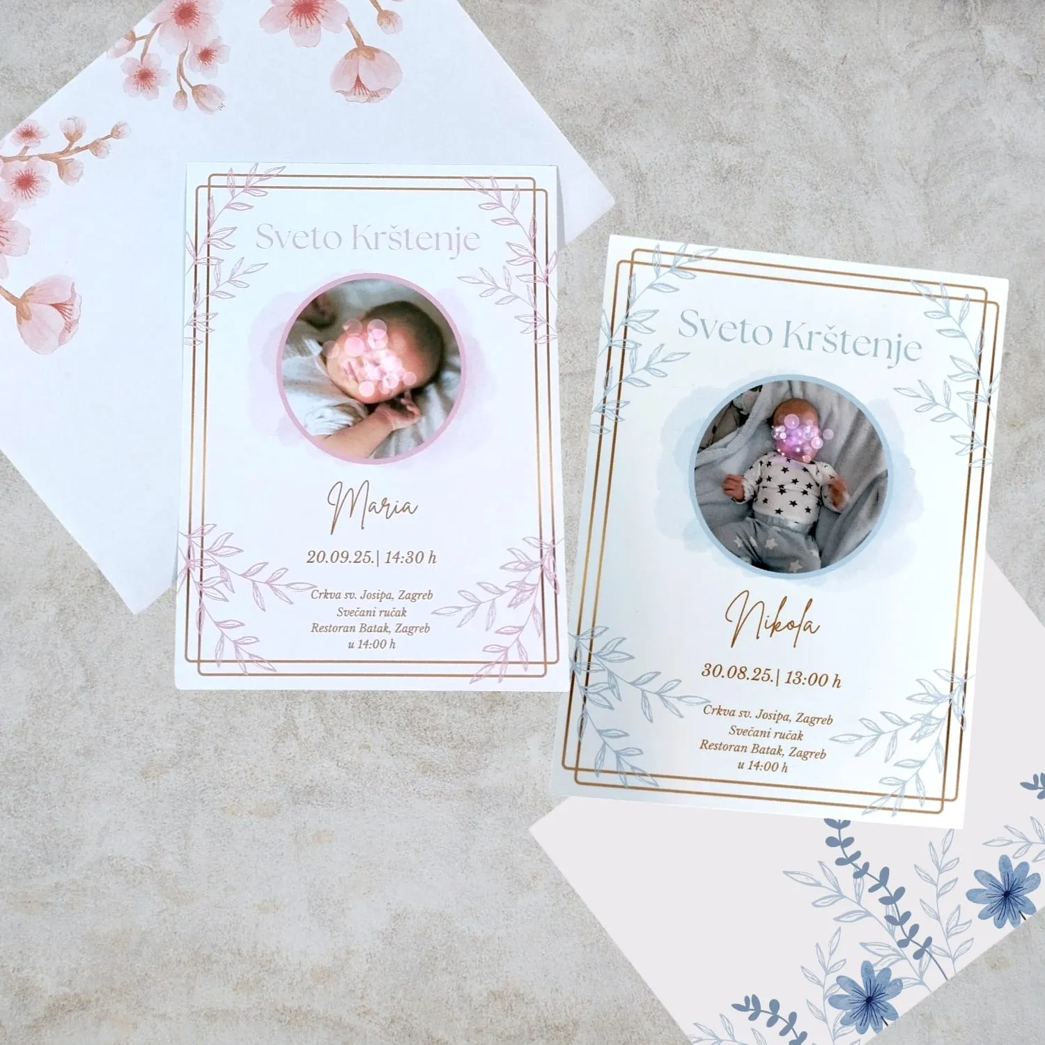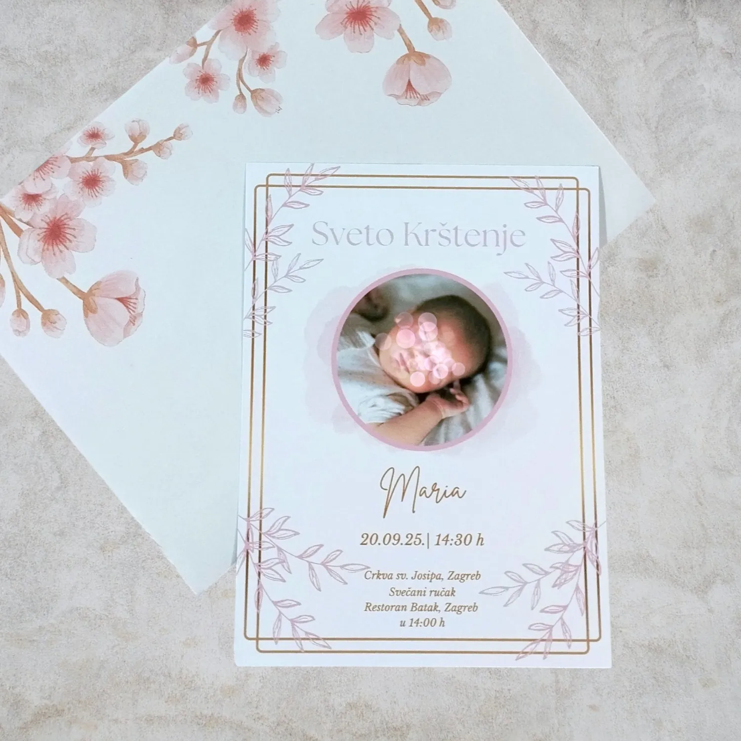 Najavite krštenje djeteta uz ove elegantne i nježne pozivnice. Pozivnica je izrađena s posebnom pažnjom na detalje, a sadrži i predivnu kovertu usklađenu sa pozivnicom.