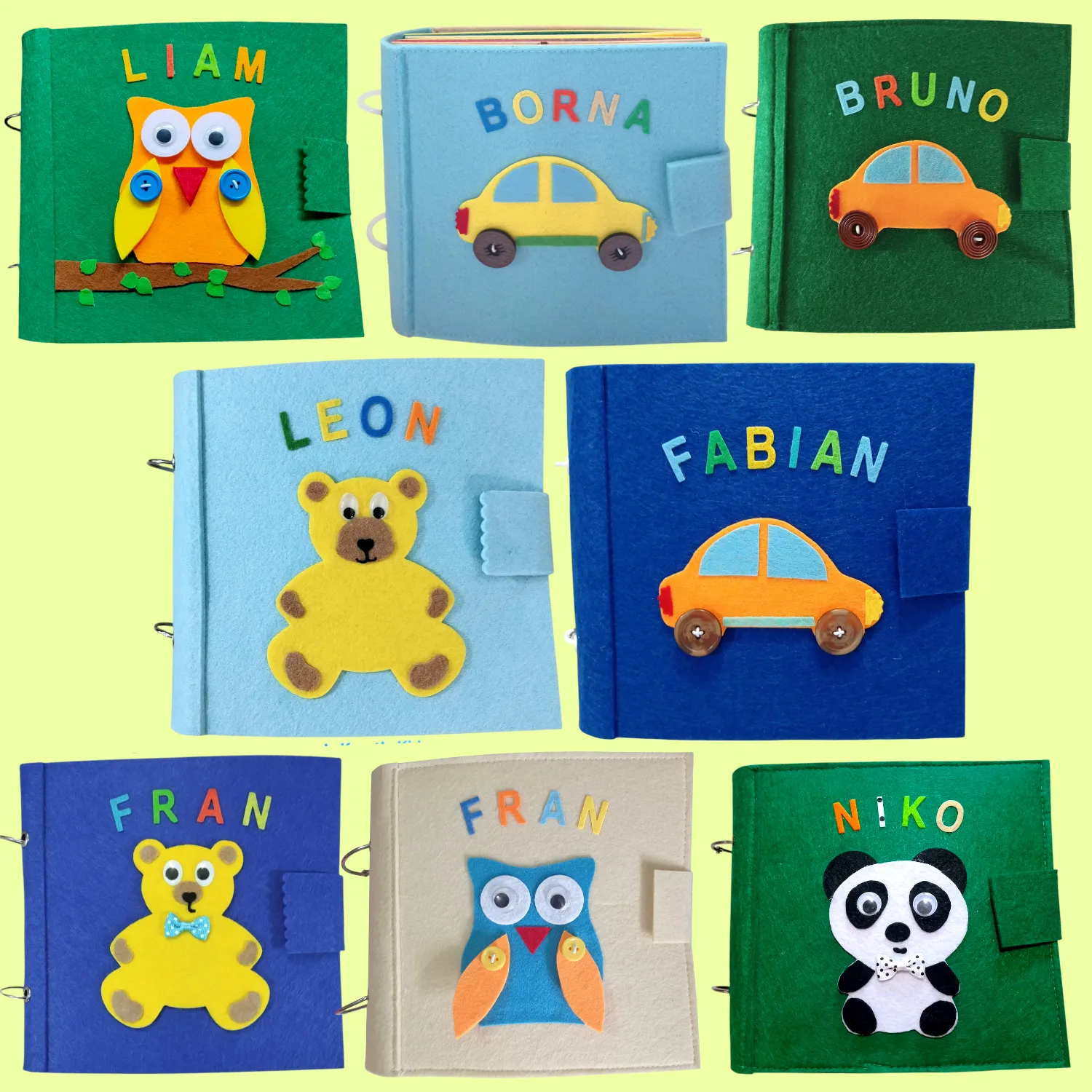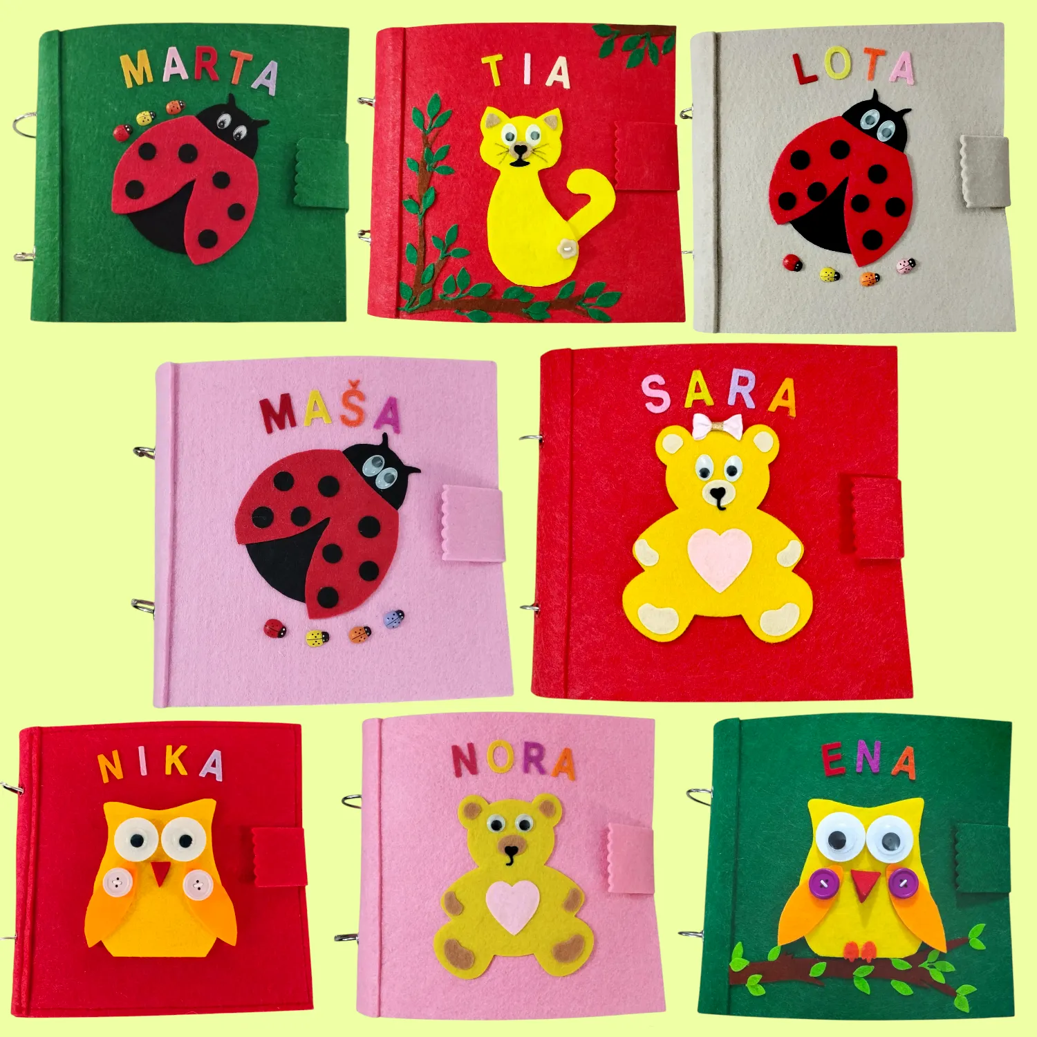 • Materijali: filc, silikon, tekstilni elementi, pvc, metal, drvo, čičak