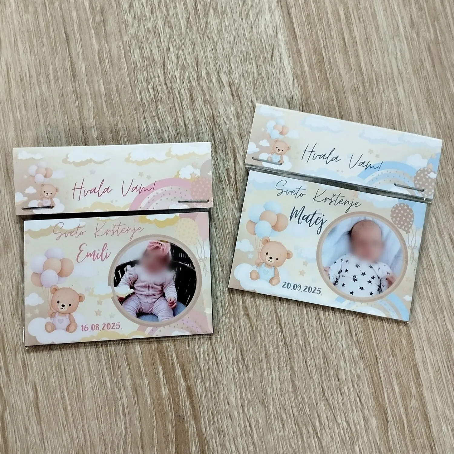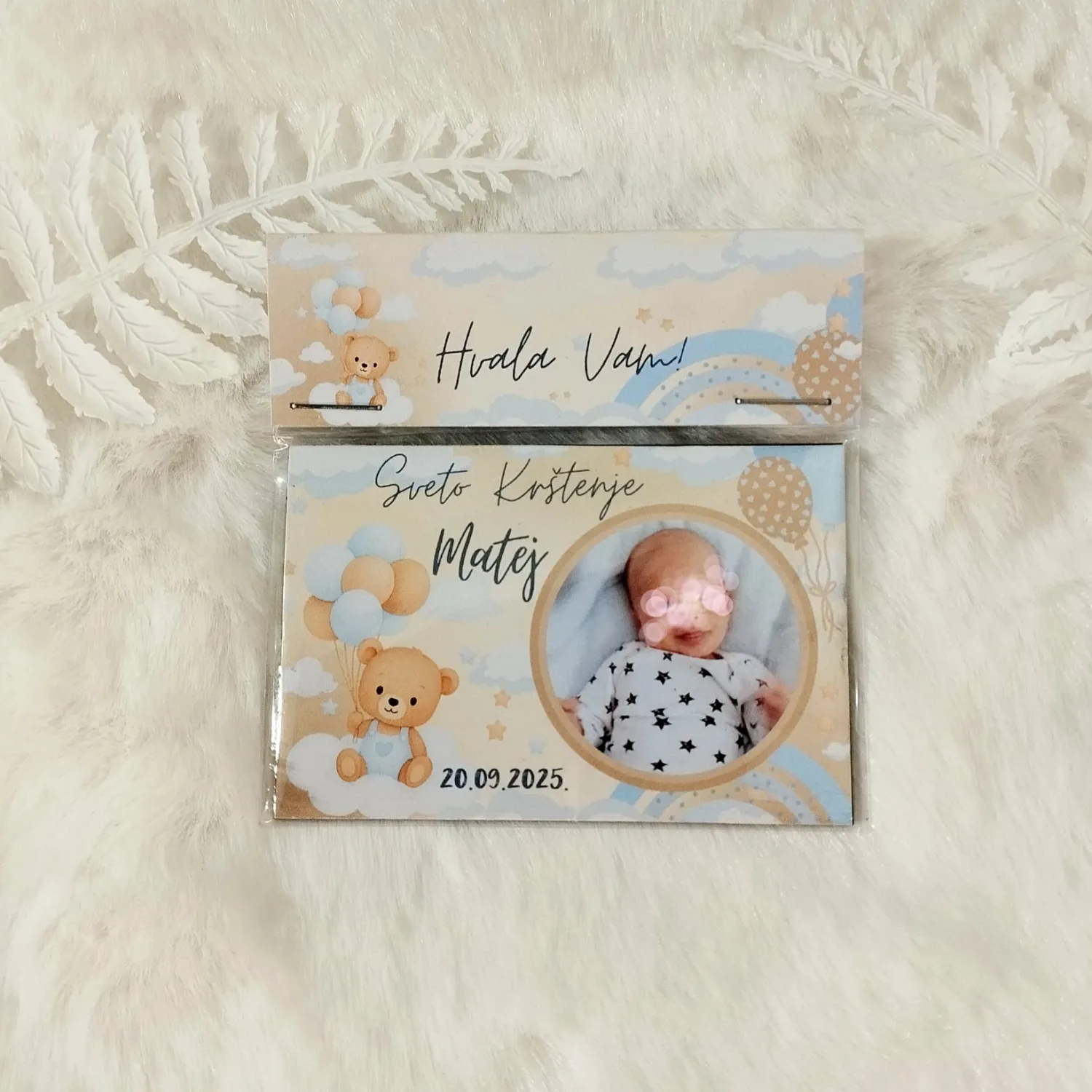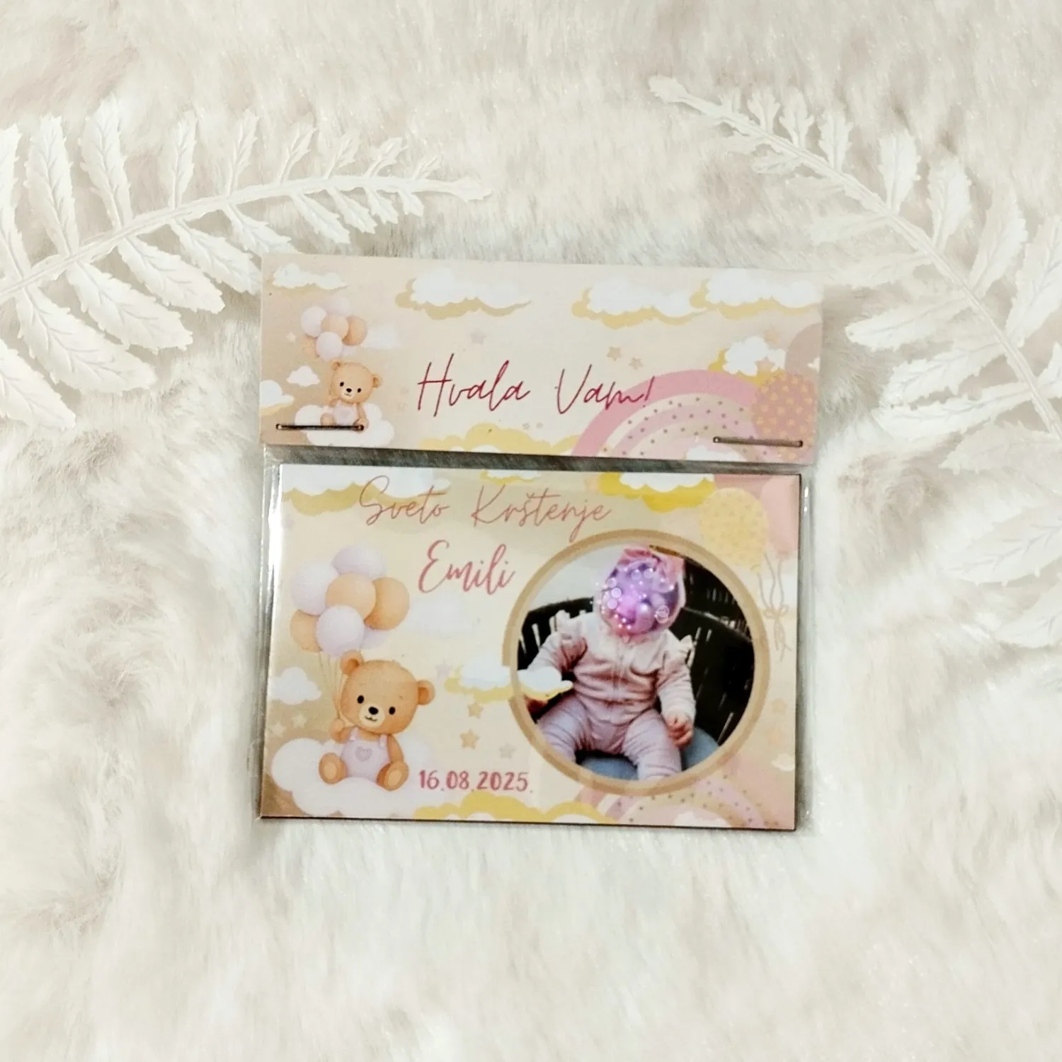 Zahvalnica dolazi u obliku magneta koji možete staviti na hladnjak ili bilo koju metalnu površinu – savršen način da svakodnevno podsjeća na dan kada je dijete primilo sakrament krštenja.