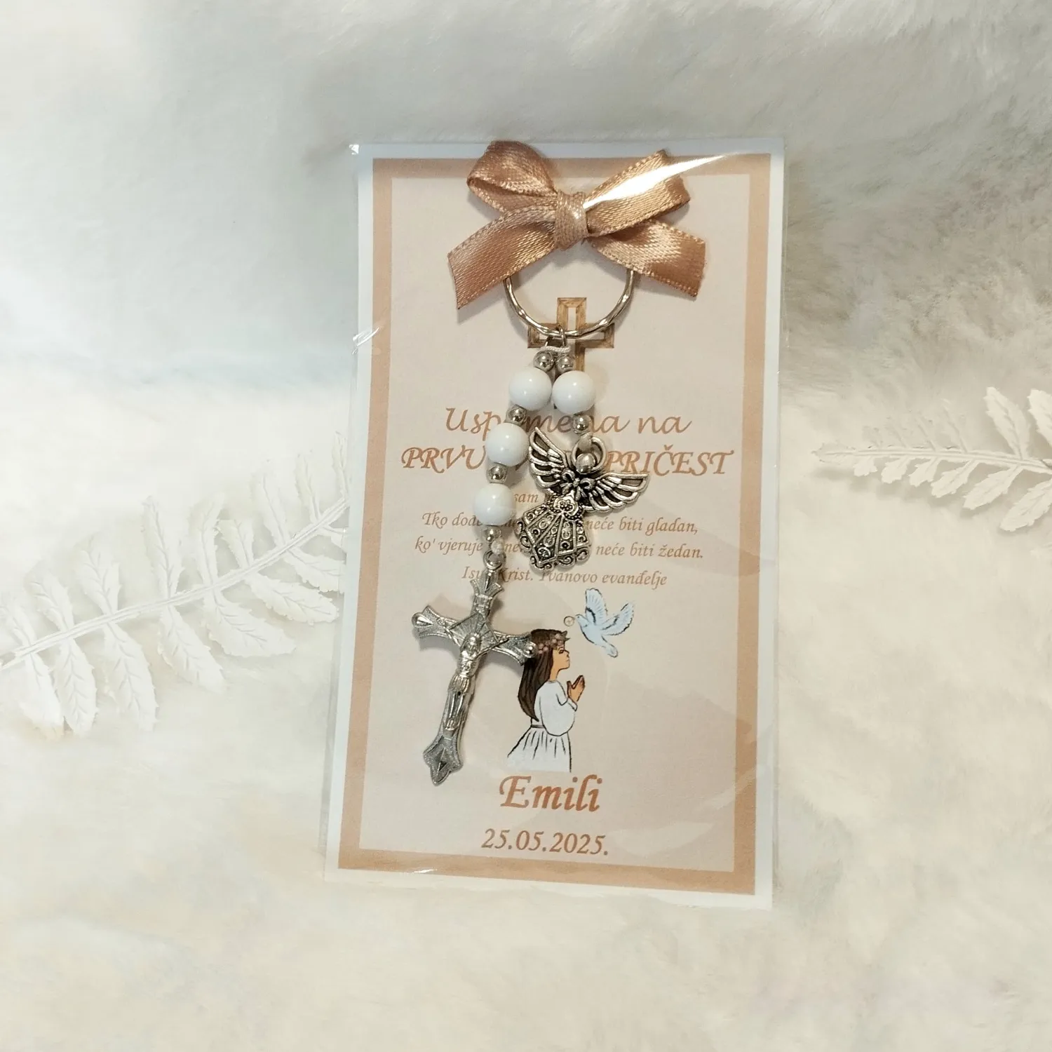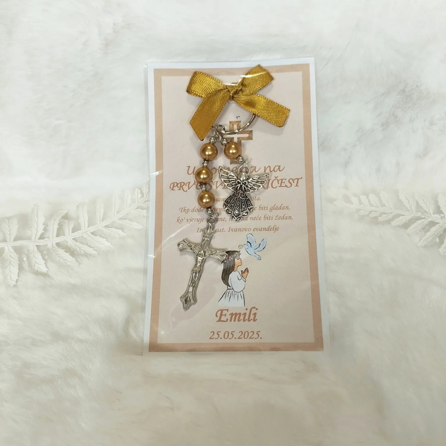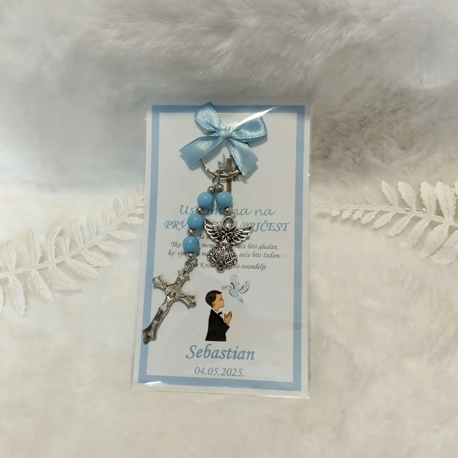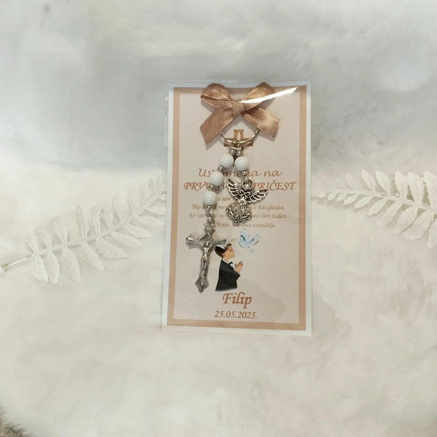 Elegantna zahvalnica za prvu pričest s prigodnim detaljima, savršena kao zahvala i uspomena na sakrament prve pričesti.