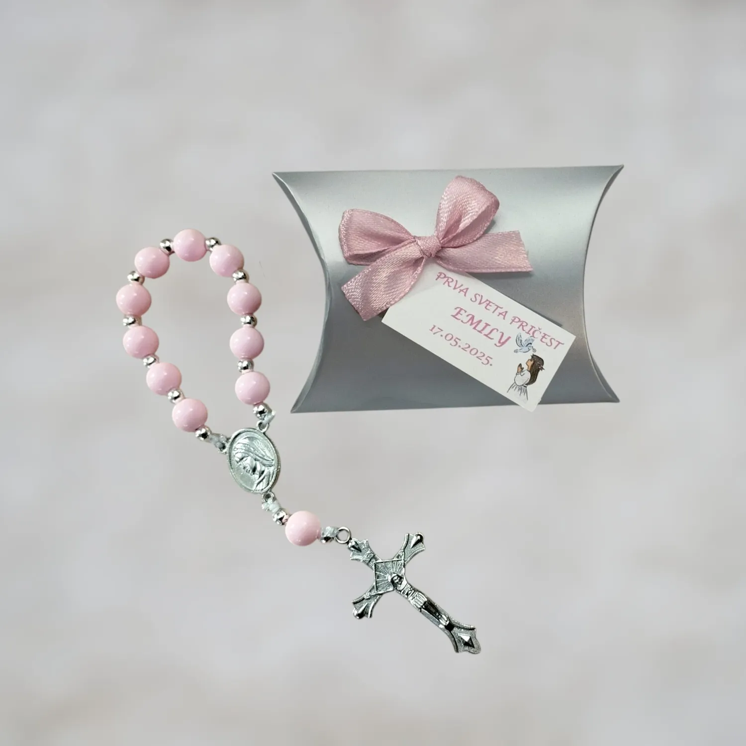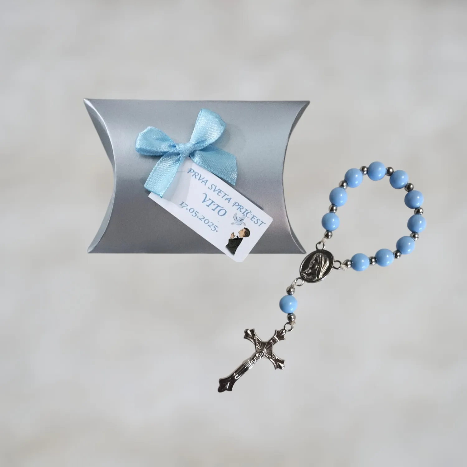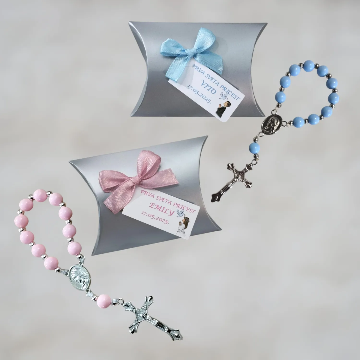 Elegantna zahvalnica za prvu pričest s prigodnim detaljima, savršena kao zahvala i uspomena na sakrament prve pričesti.