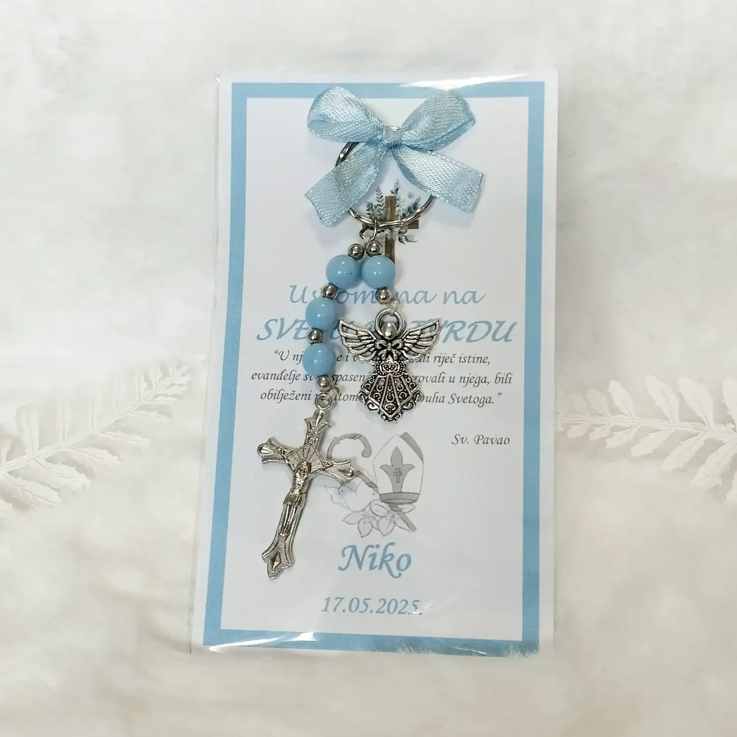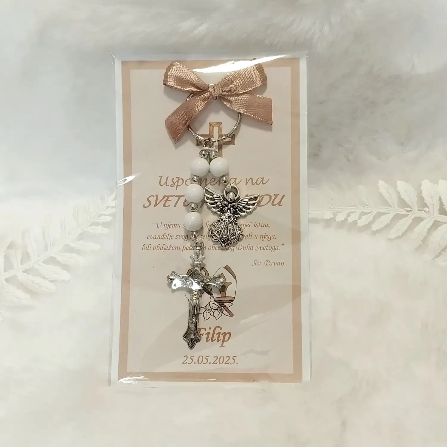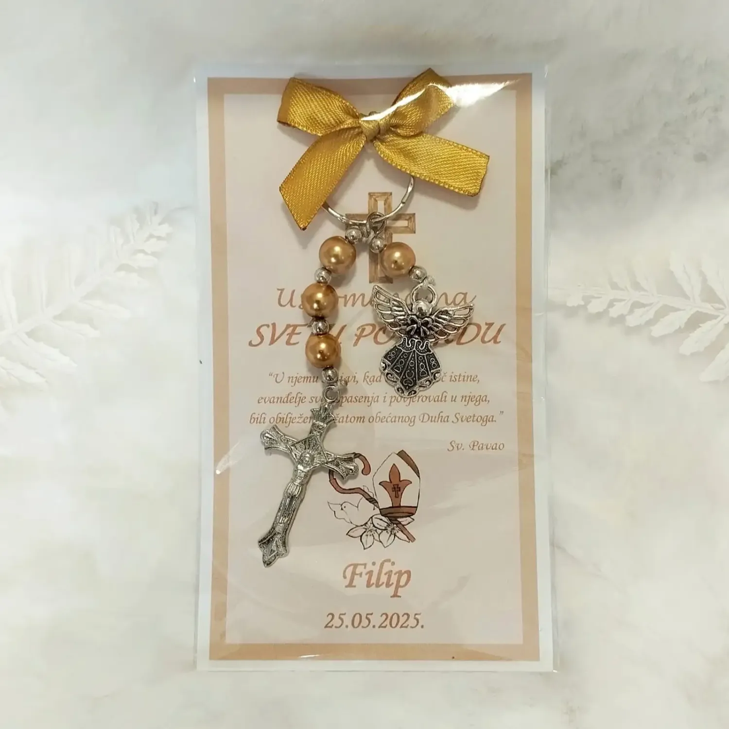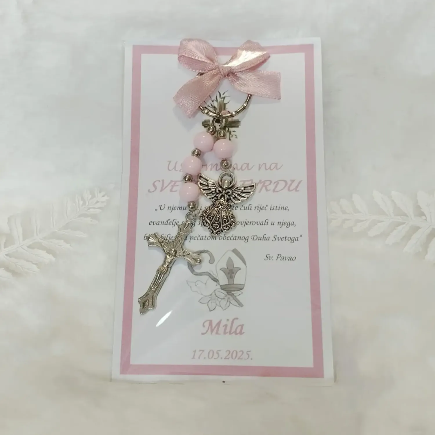 Elegantna zahvalnica za svetu potvrdu s prigodnim detaljima, savršena kao zahvala gostima i uspomena na sakrament prve pričesti.